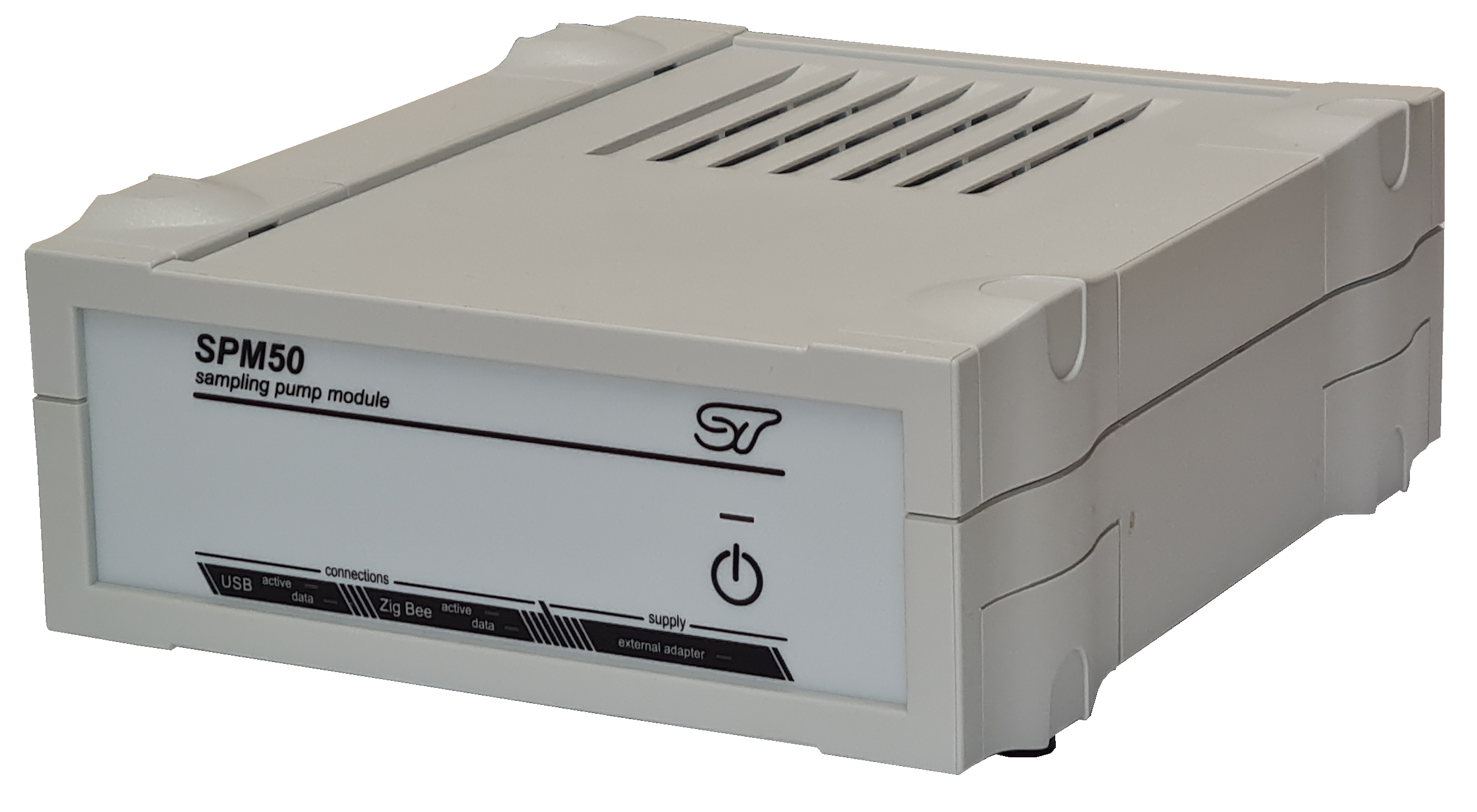 Moduł pompki próbkującej służy do zasysania próbek gazu do rurki próbkującej i doprowadzania ich do określonego miernika. Konstrukcja i parametry modułu zostały dostosowane do współpracy z miernikami firmy SENSOTRON, na przykład z szybkim miernikiem stężenia gazu FCM41.- opis szczegółowy